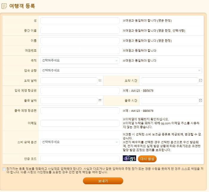 QR코드는 여행객이 기재한 이메일 주소로 발송되니, 미리 휴대폰에 저장(캡쳐)해두세요.